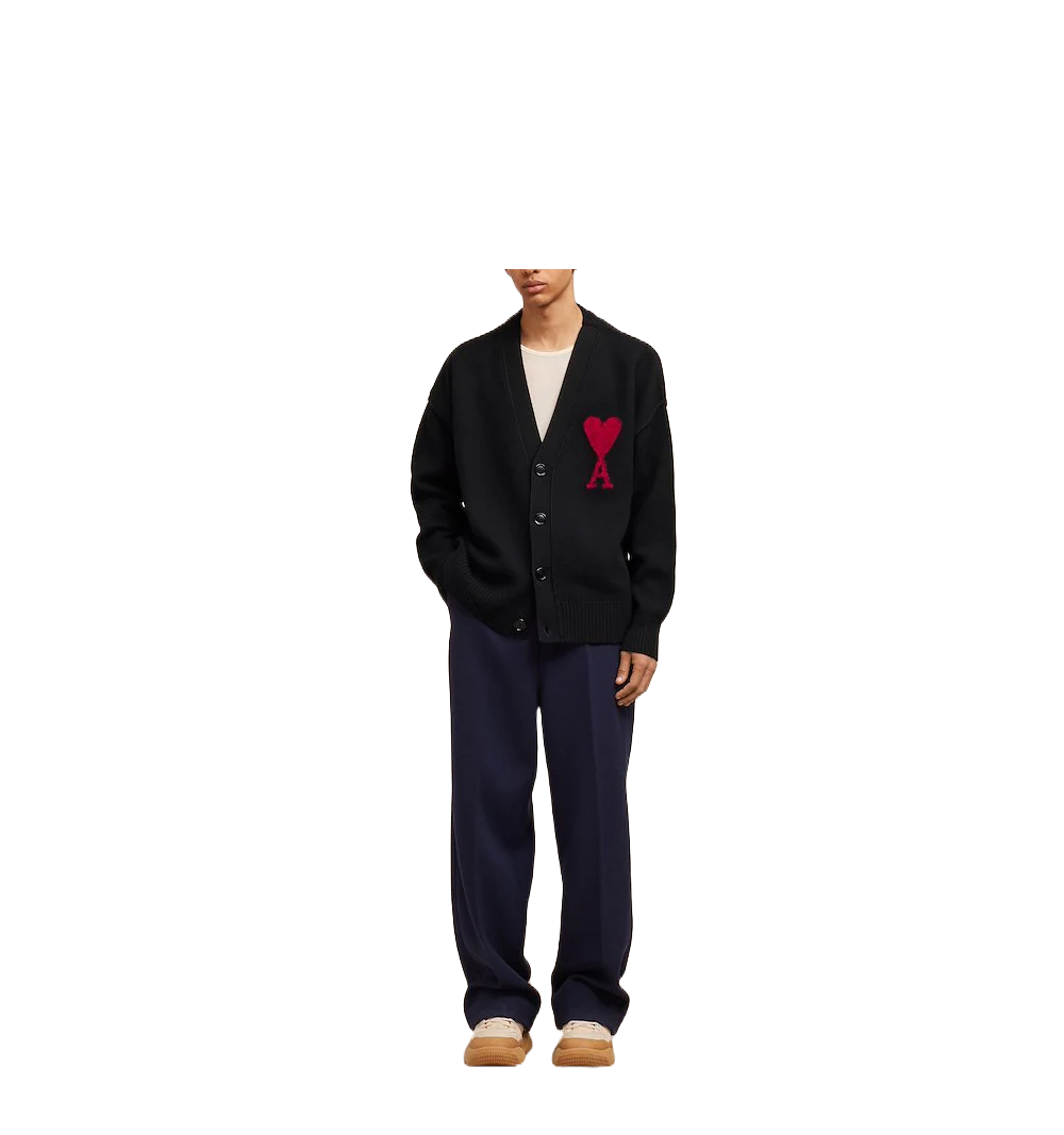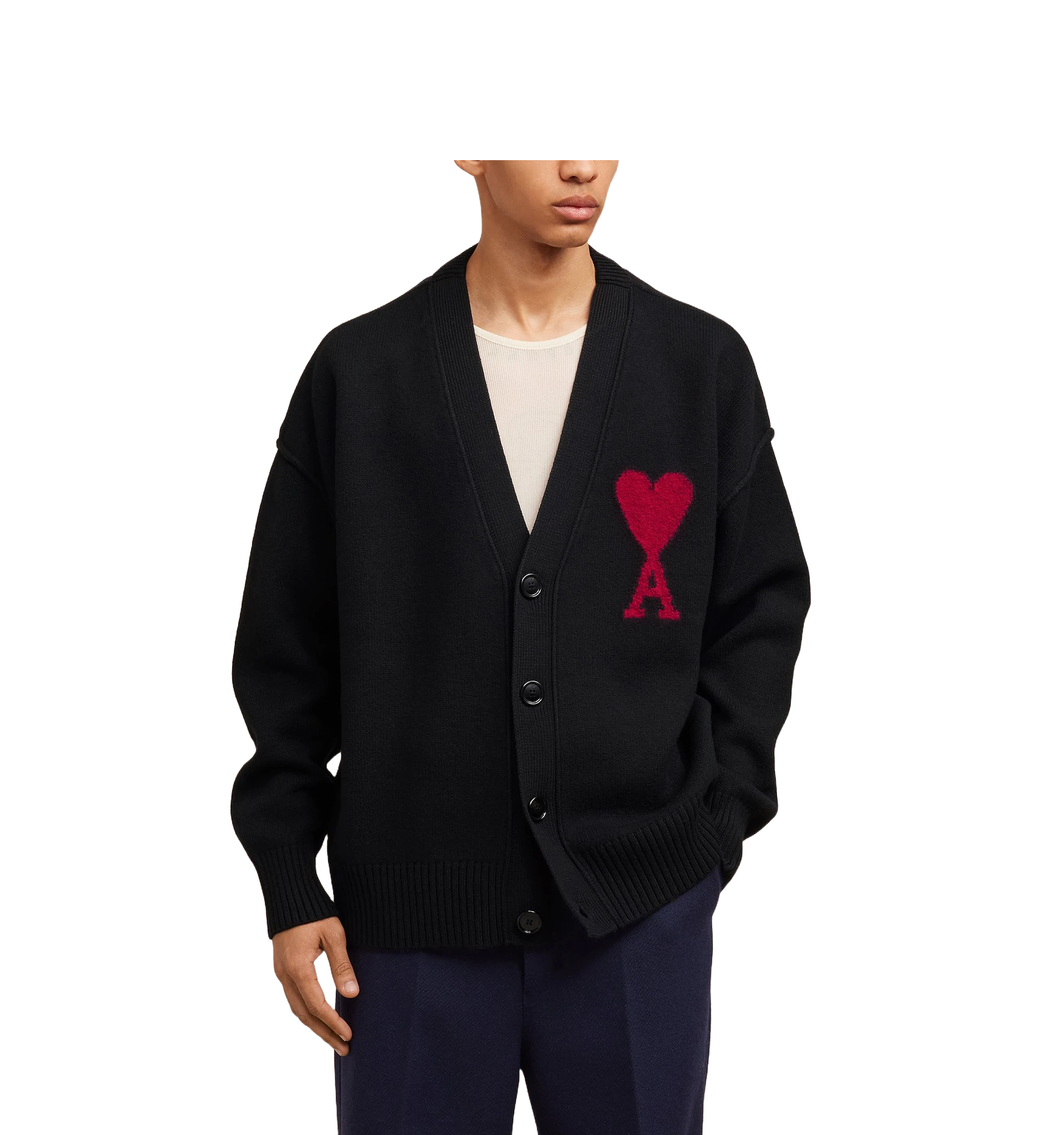 Cardigan 'Ami de coeur' in lana chunky, ricamo logo, scollo a v.